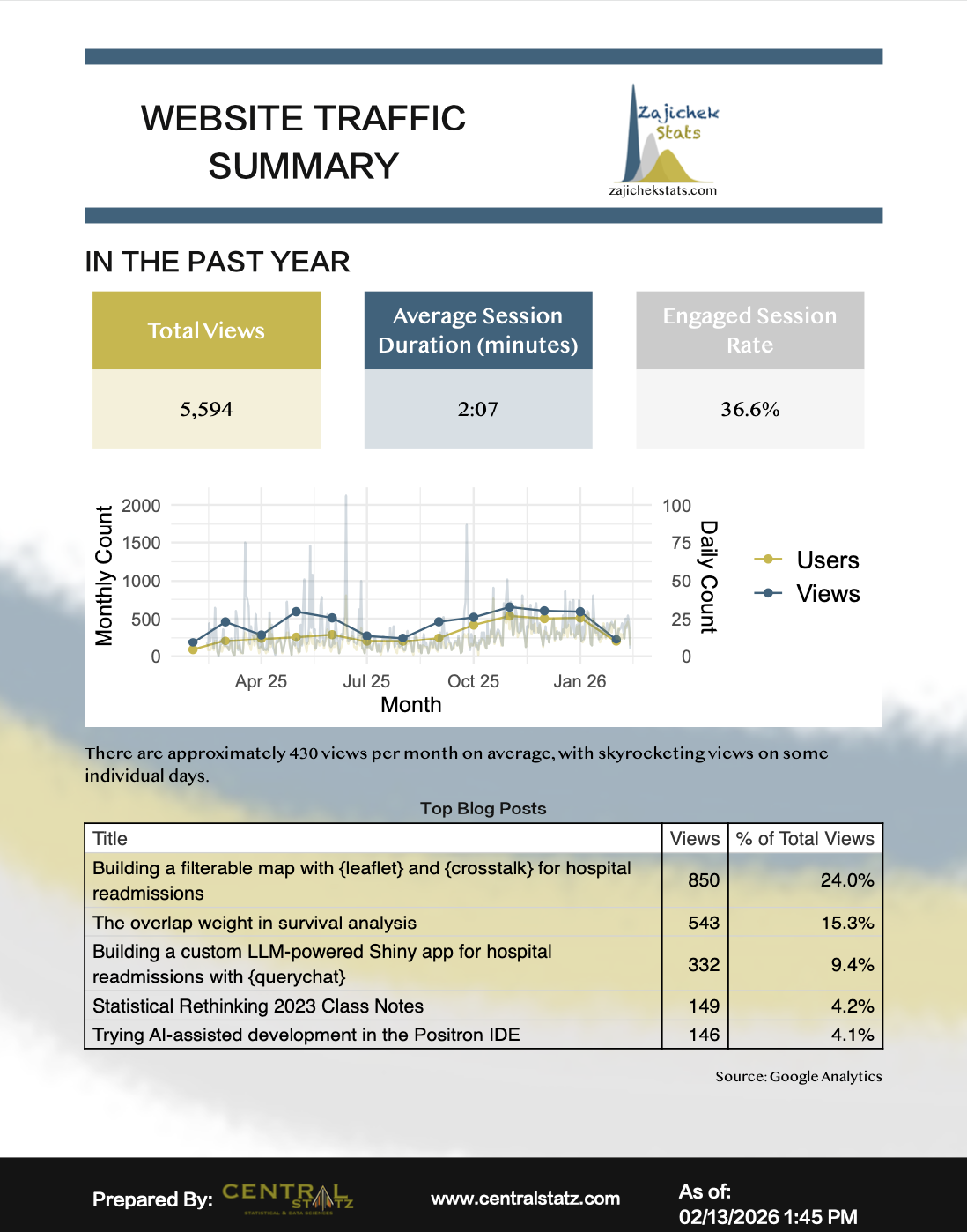 Generating an on-demand, branded PDF report sourced from Google Analytics.